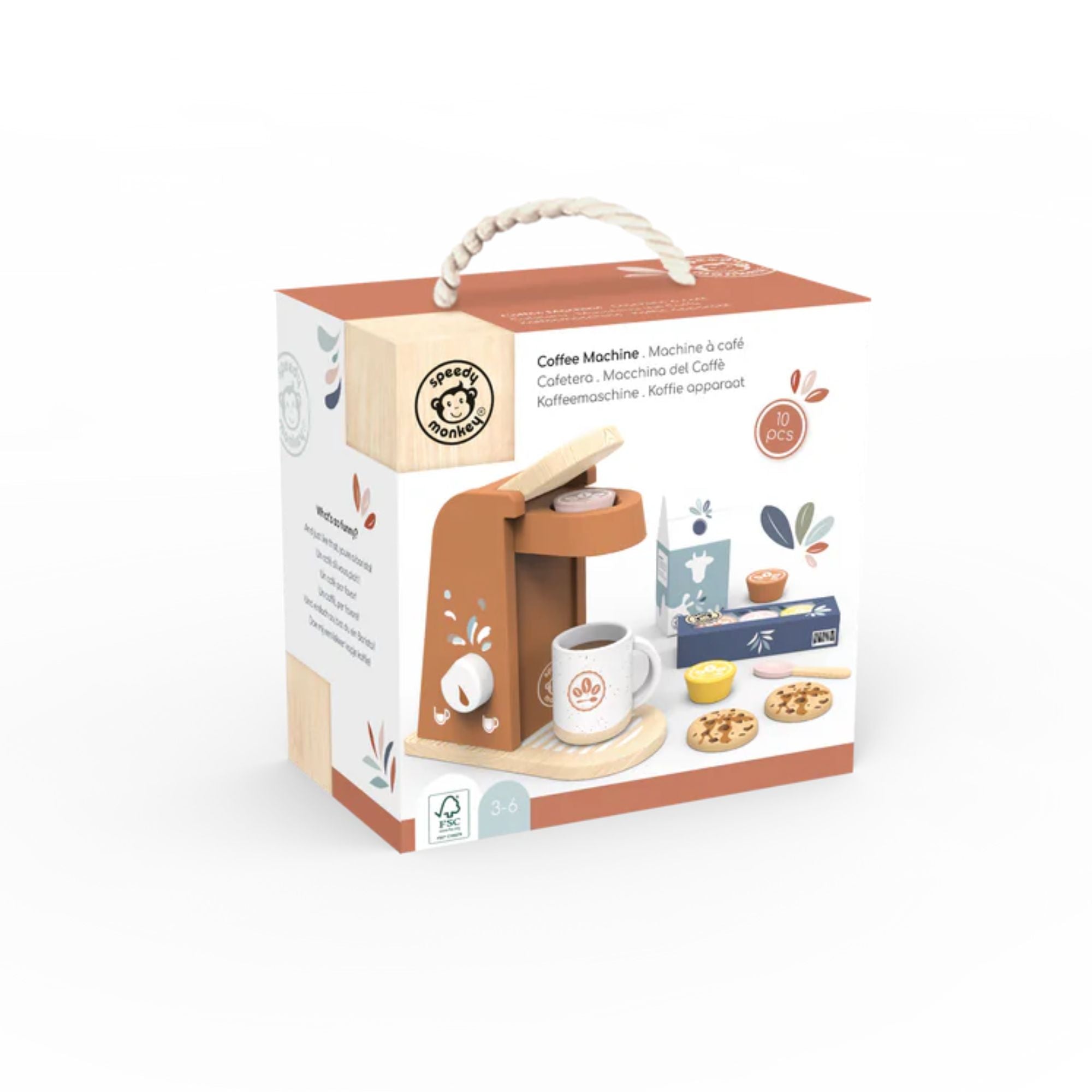 Enhance playtime with Speedy Monkey's Coffee Machine! This fun and educational toy allows little ones to create barista-quality drinks with just a simple touch of a button, inspiring imaginative play and culinary creativity. Made from high-quality wood for durability (FSC certified) and a stylish look.