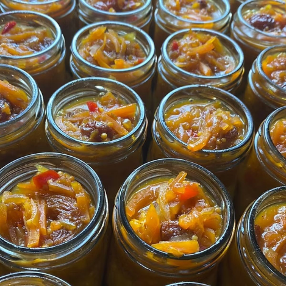 Carrot, Onion, Red Peppers, Apple Cider Vinegar, Brown Sugar, Sultanas, Tapioca Starch, Garlic, Chilli Spices