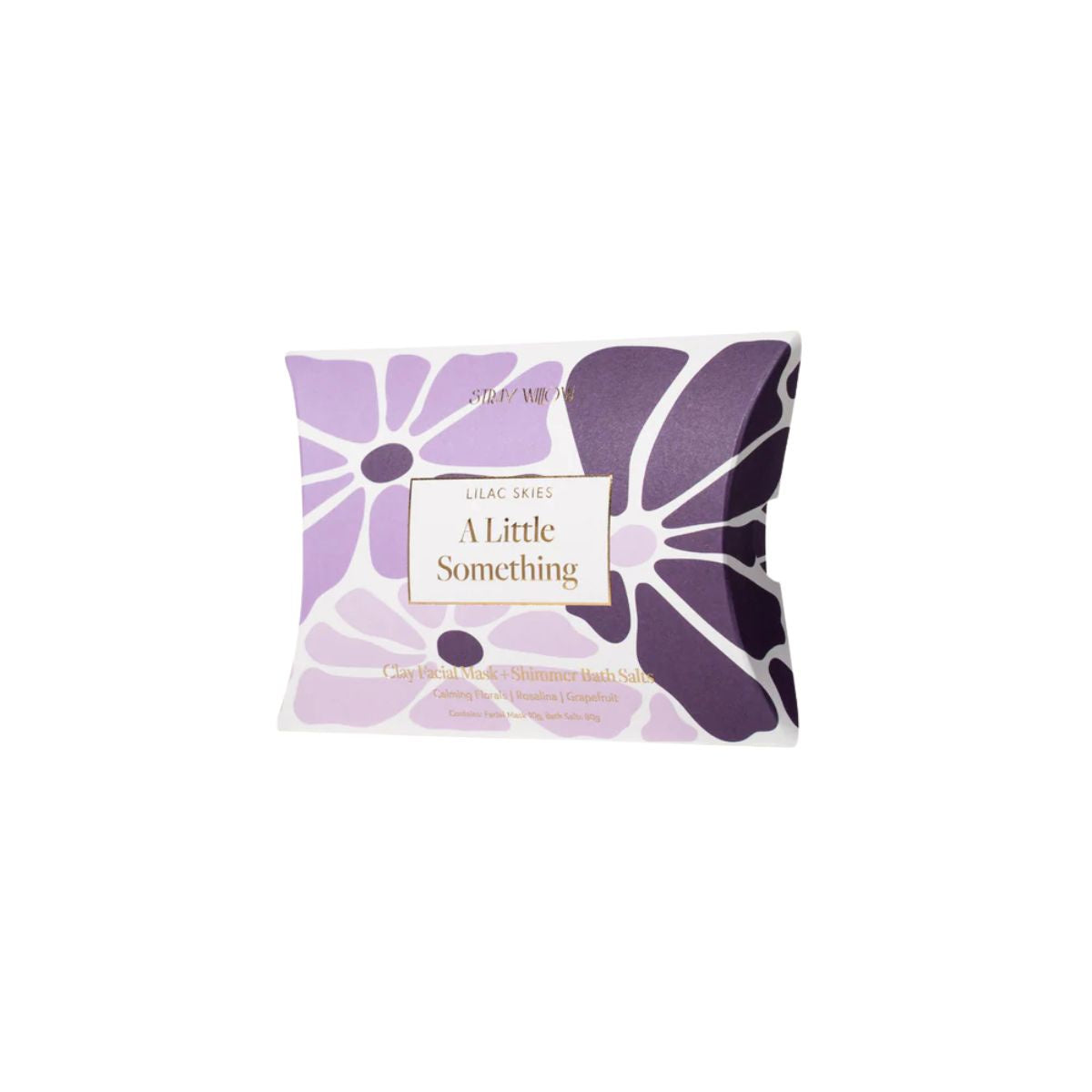 A little gift of everyday calm. 'A Little Something' Lilac Skies is a Pocket Duo by Stray Willow that offers a soothing self-care ritual, wherever the day takes you. This thoughtful gift set includes an Antioxidant Facial Mask enriched with natural botanicals to brighten and revitalize sensitive skin, paired with Shimmer Bath Salts infused with calming essential oils to soften skin and soothe the senses. This duo encourages pause and presence. Beautifully handcrafted with natural ingredients and sustainably packaged for moments that matter.
