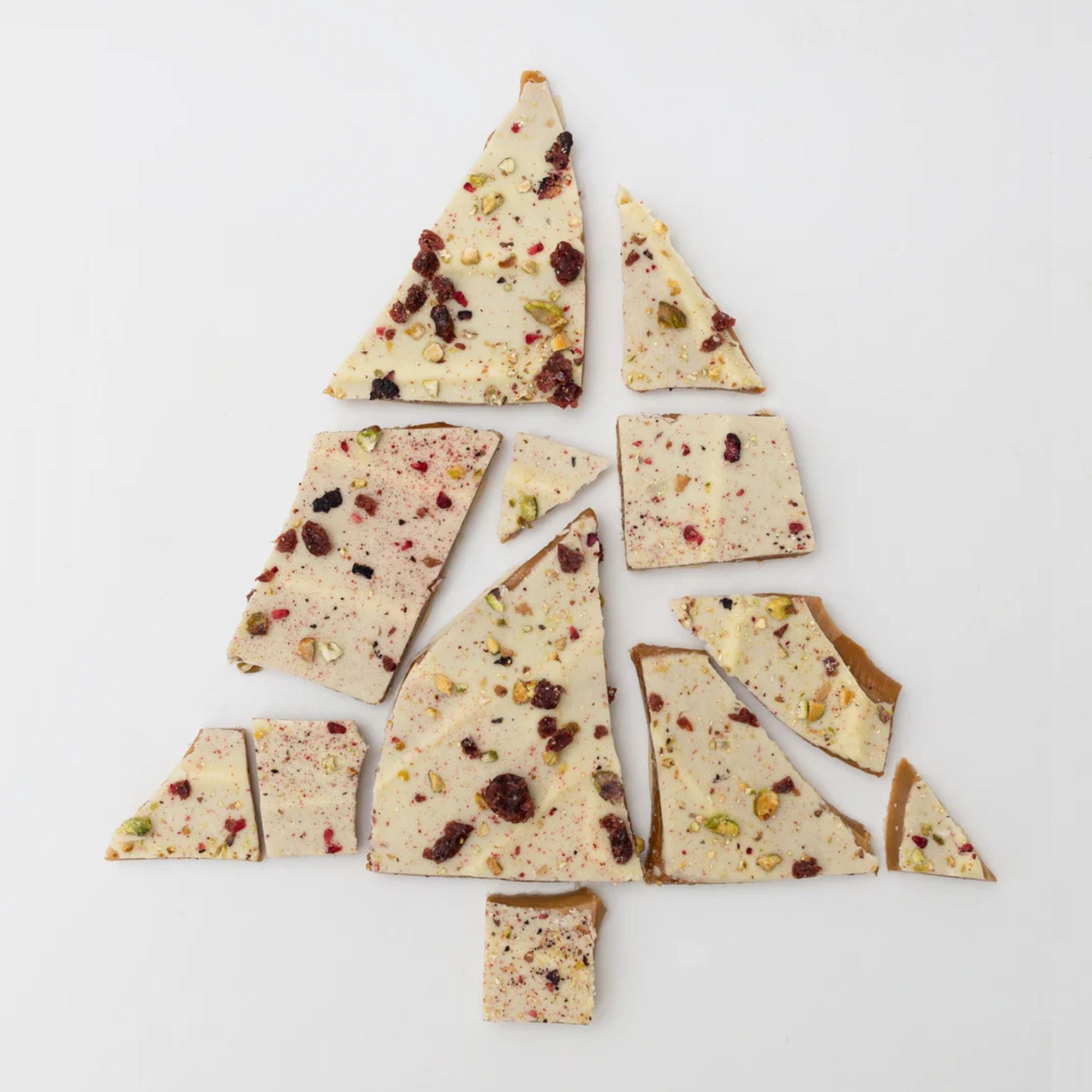 Handcrafted The Confectionist Toffee with creamy white chocolate, crushed pistachios, and bursts of freeze-dried summer berries. Sweet, nutty, and perfectly balanced.