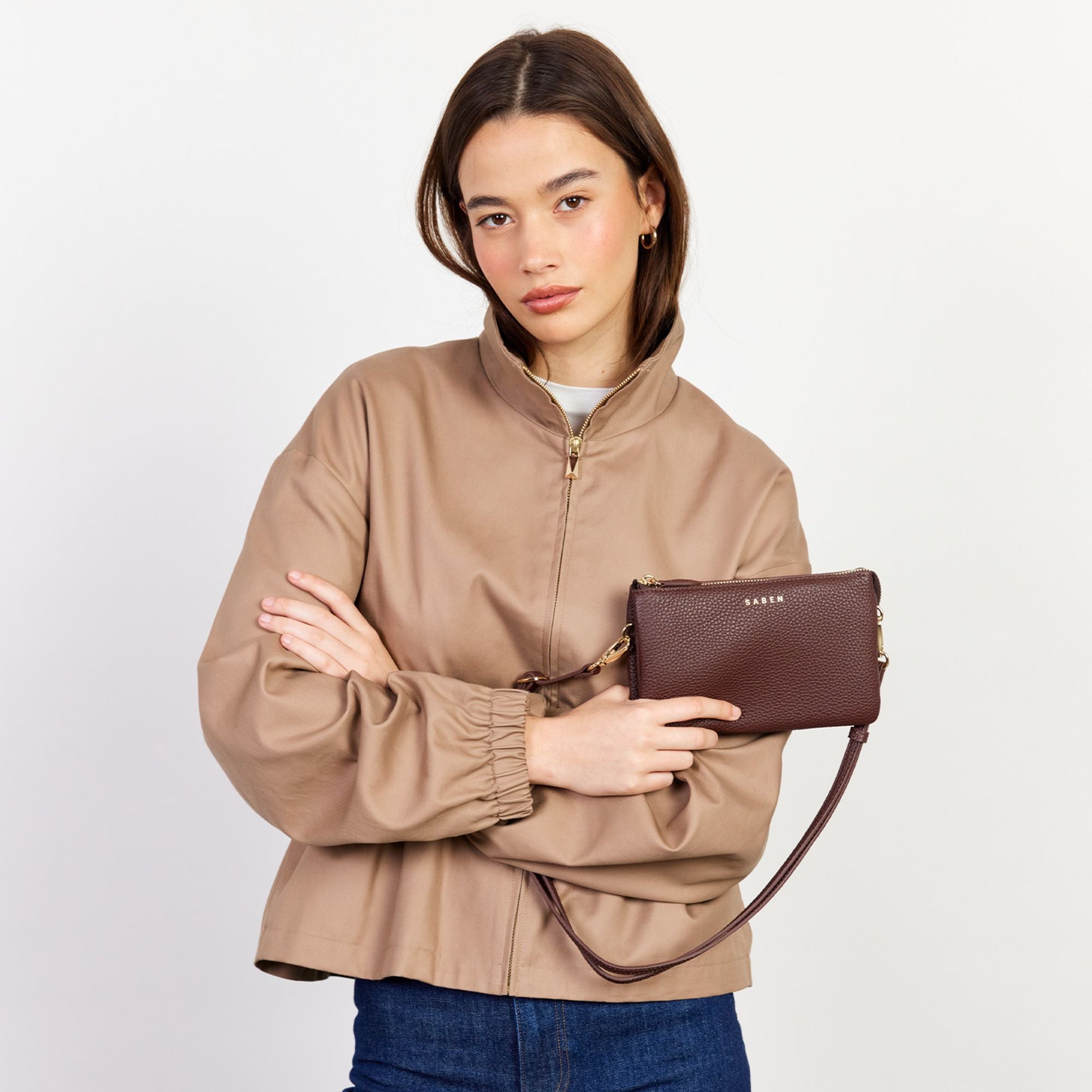 Wallet, clutch, and crossbody SABEN staple, Tilly is a tri-factor, and the linchpin to keeping your life in order. A bag that works as hard as you do. Bunked in your big bag as a wallet, worn as a clutch with the wristlet strap or utilize it as a petite yet highly productive cross-body handbag with the ease and elegance of the cross-body strap. Need we say more?