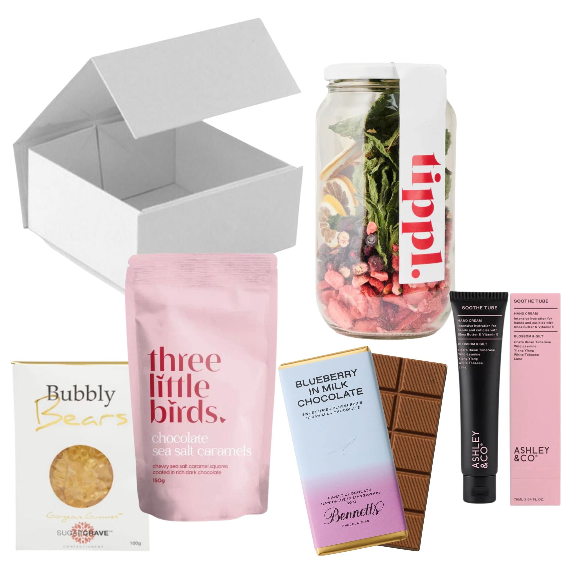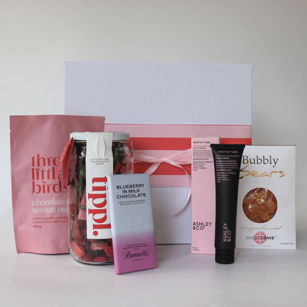 PLEASE NOTE: Colours, flavours or scents from the product image may vary from time to time due to stock levels. We will always swap out unvailable products with like products to create a beautiful gift with the other choices in the box.