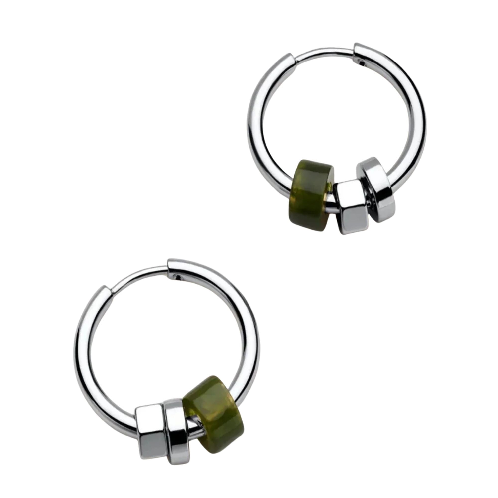 These Amina Hoop Silver earrings by Zafino blend a subtle touch of olive colour with a sturdy brass base, creating a timeless elegance that complements your style effortlessly. Ideal for both work and play, they add a beautiful contrast to any outfit, making them a versatile and reliable accessory for everyday wear.