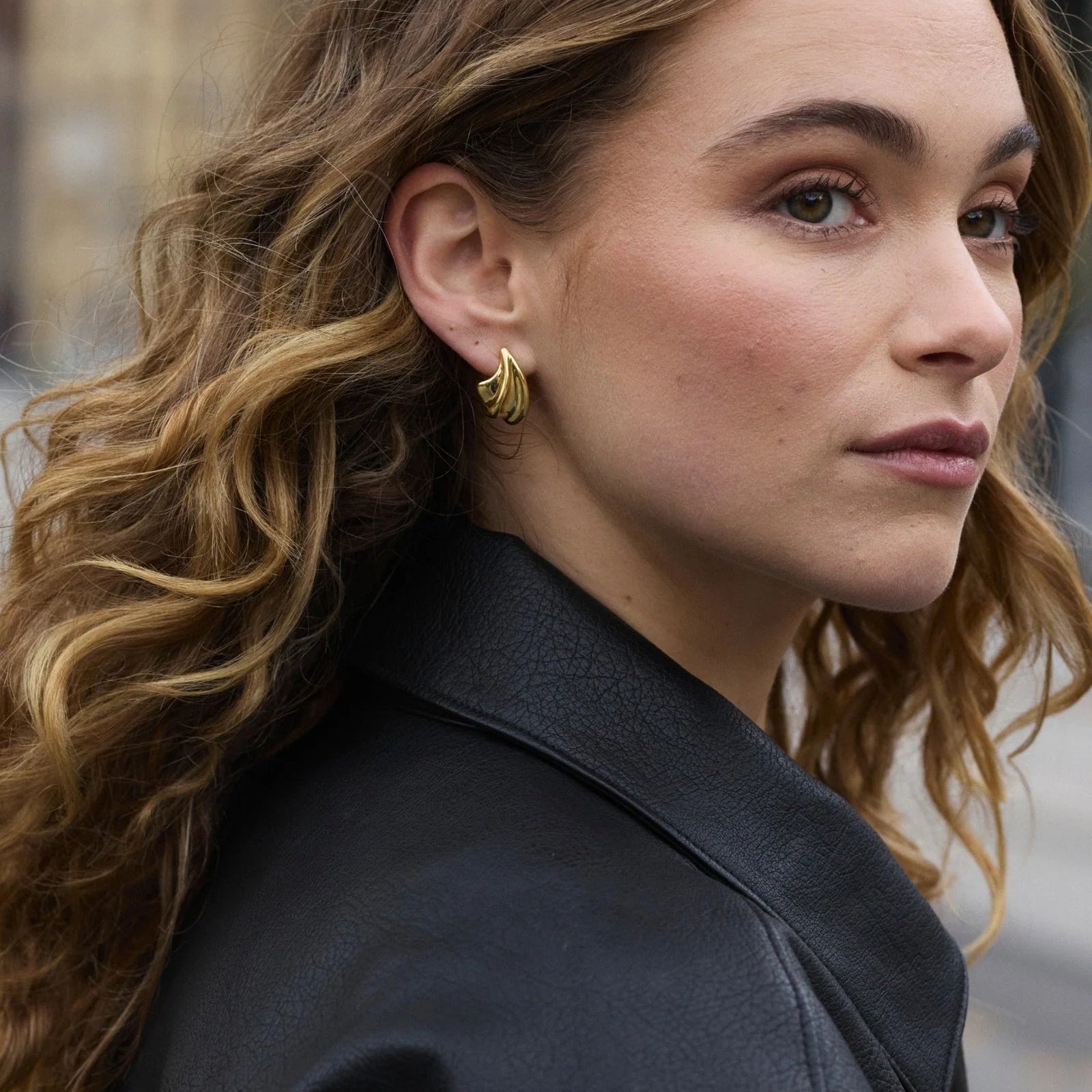 The Claudia Earring features an elegant, organic wave shape that flows effortlessly with every movement. Its sculptural form adds a modern edge to any look, while maintaining a soft, feminine feel. A timeless piece that makes a subtle yet striking statement.