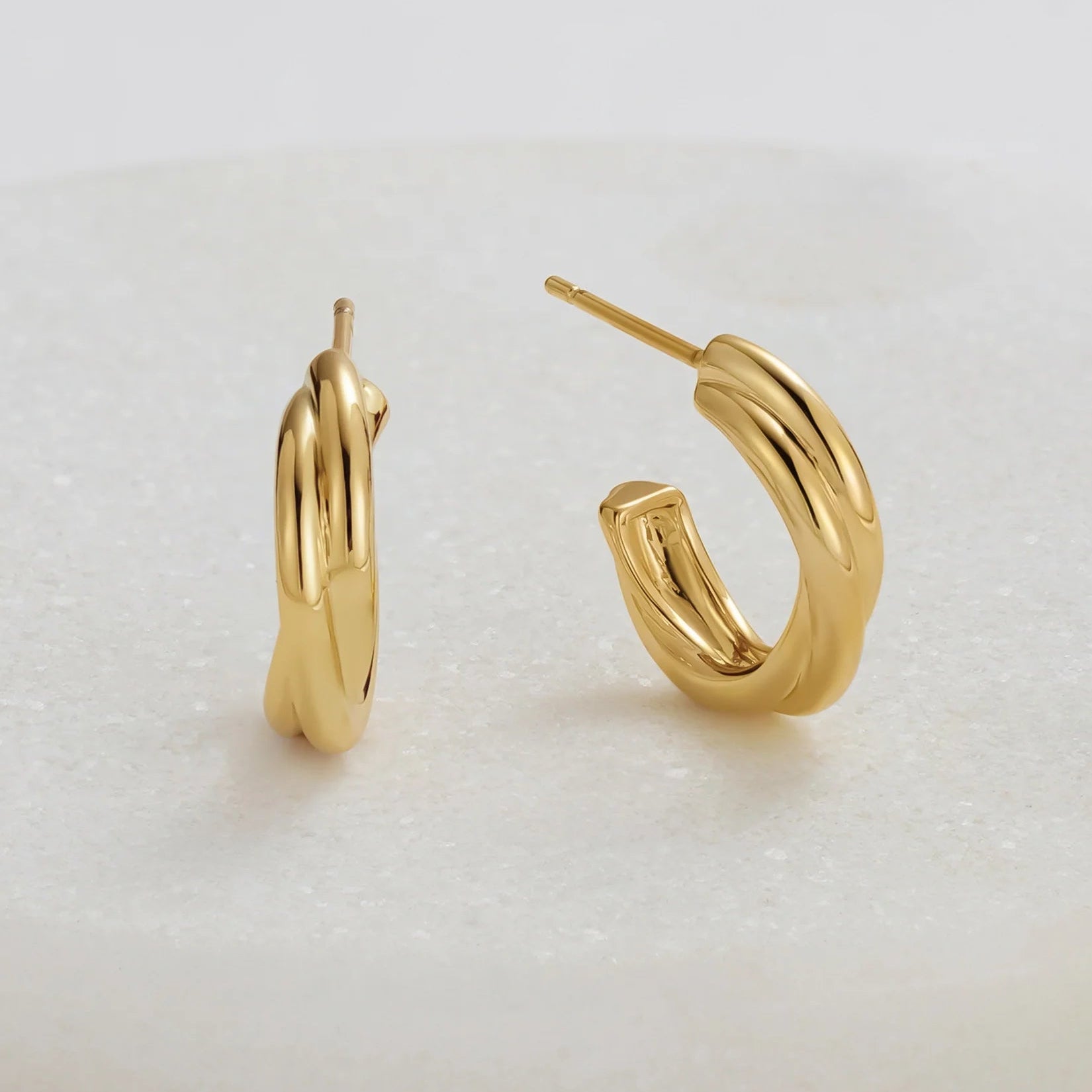 The Eloise Hoop is a small, dainty hoop designed with a subtle twisted detail for a modern yet timeless look. Lightweight and versatile, it’s the perfect everyday earring—easy to style solo for minimal elegance or layered with larger hoops and studs for a chic stacked effect.