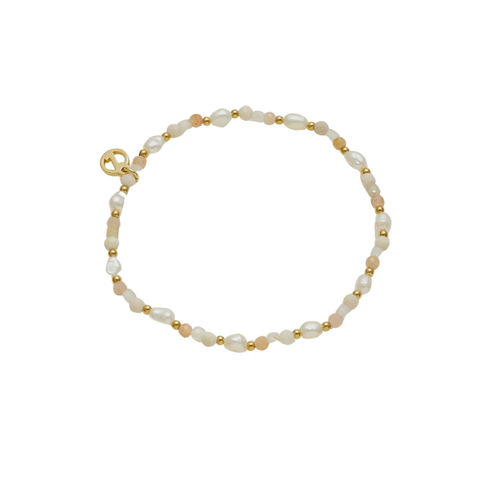 This bracelet by Zafino features lustrous freshwater pearls combined with blush-coloured semi-precious stone beads, creating a stunning contrast of textures and colours. Crafted with meticulous attention to detail, the Harlow Bracelet showcases the natural beauty of these high-quality materials.
