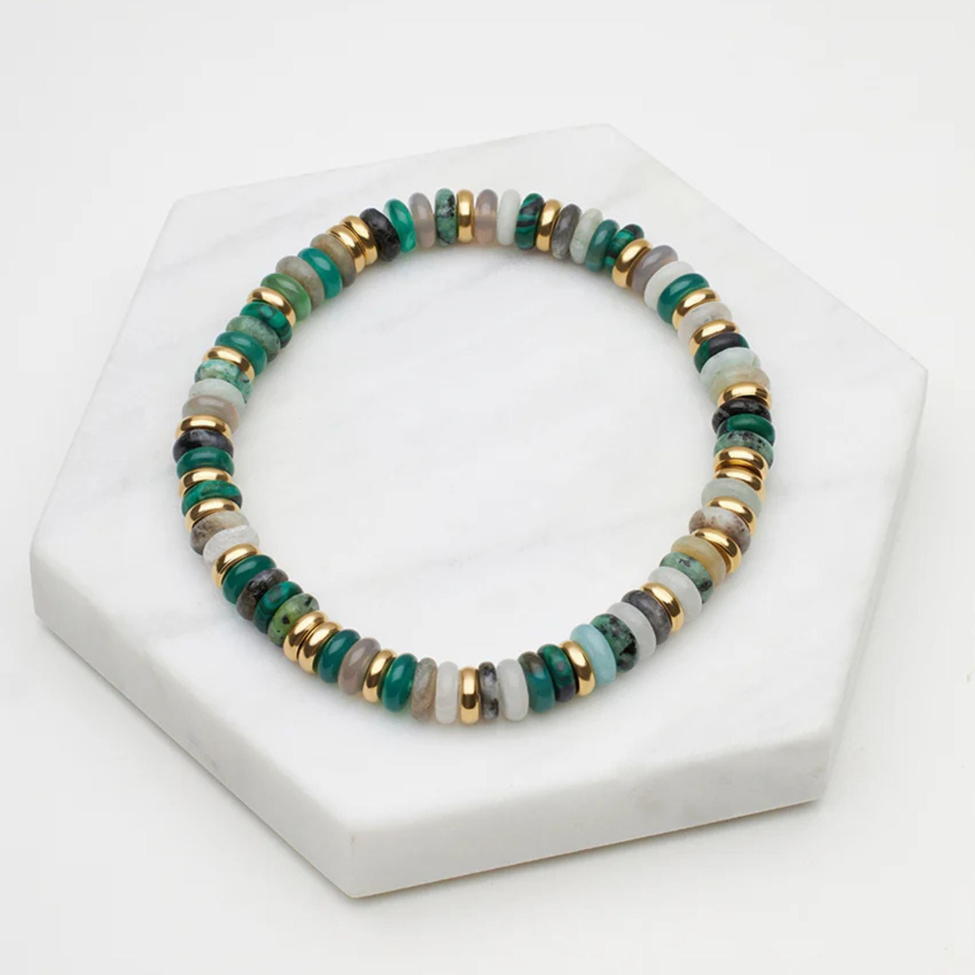 A bold and elegant statement piece, featuring a gradient of olive green-toned beads beautifully contrasted with gold beads by Zafino. This striking combination creates a rich, sophisticated look, perfect for adding warmth and depth to any jewellery collection.