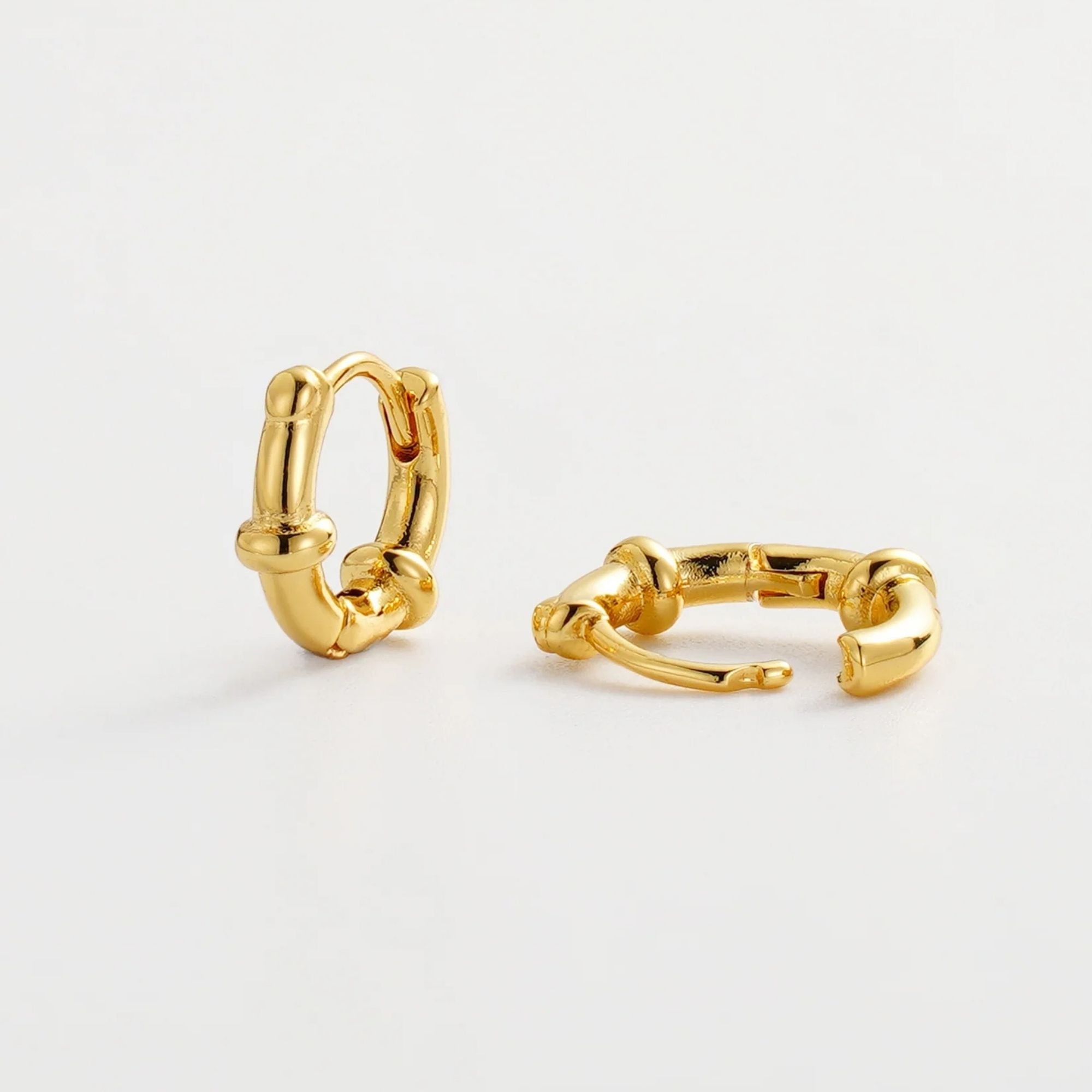 The Zafino Tessa Huggie is a modern everyday hoop featuring a sculptural knot detail that adds subtle texture and dimension. Designed to sit close to the ear, this piece delivers effortless polish while remaining lightweight and versatile.